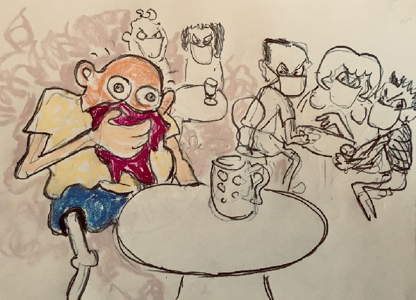 Alex Verduijn den Boer heeft  altijd figuratief geschilderd, ook al was dat een beetje taboe toen hij op de Academie zat. Zijn schilderijen noemde hij liefdesverklaringen aan de stad, in een interview (link) met Willem Minderhout. Hij is vooral geïnteresseerd in contrasten: mooi en lelijk, opbloei en verval en schildert ook graag in Aragon, waar hij een primitief hutje heeft. Ook daar verandert alles heel snel. Net als Coc van Duijn heeft hij een atelier in het Spanjaardshof in Den Haag. Zijn website: http://www.verduijndenboer.nl/
