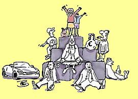 Nu kun je de piramide ook gebruiken om een wensbeeld te bepalen. Dat je zo trots bent op jezelf, dat je jouw kenmerken bovenaan drapeert. En wie zegt trouwens dat bovenaan een piramide de identiteit moet staan waarvan je veronderstelt dat die in de samenleving domineert? Je kunt ook andersom redeneren: de basis vormen uit de identiteiten die de meeste macht en invloed hebben, als ware het de basis van de samenleving. Bovendien is er niemand die maar één identiteit heeft. We hebben er allemaal een heel stel.