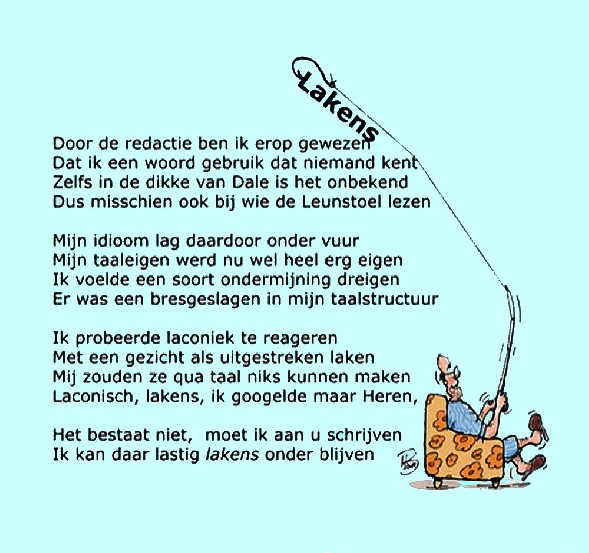 Het schrijven van gedichten, rijmpjes en verzen zit me in het bloed. Mijn vader deed het. Sinterklaas was mijn belangrijkste held. Later kwamen daar Trijntje Fop, John O’Mill en Daan Zonderland bij. Teksten van liedjes en cabaret bleven als vanzelf in mijn hersenpan steken. Pas als student begon ik zelf te schrijven. Later toen ik student-assistent was, schreef ik verzen voor een blad van de vakgroep onderwijskunde, waarvan ik deel uitmaakte. Iemand raadde me aan eens wat op te sturen aan het tijdschrift ‘De Tweede Ronde’. Vijf rijmpjes werden geplaatst. Af en toe zijn er sindsdien verzen van mij geplaatst in bundels of tijdschriften. Inmiddels voel ik me een dichter. Ik schrijf teksten, gedichten en ook nog altijd rijmpjes. De Leunstoel biedt mij een prachtige kans om gedisciplineerd te werken en tenminste 20 tot 30 sonnetten of andere producten per jaar te maken. Af en toe kijk ik in het archief van De Leunstoel en ben dan met een deel van wat ik daaraan heb bijgedragen voorzichtig tevreden.