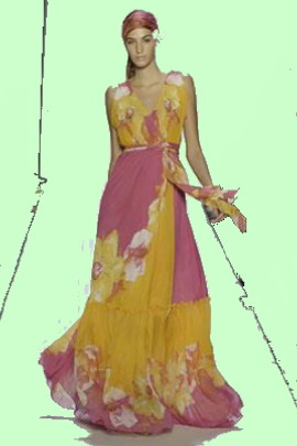 Nu is er de komende zomer onverwacht een totaal ander fenomeen op komst: de superlange rok of jurk, niet tot een eindje over de knie, maar echt tot op de voeten, ja zelfs tot op de grond, floor-sweeping noemen ze dat in Vogue. Overal zie je ze verschijnen, zomerjurkjes met een haltertopje – een strikje achter in de nek – losjes gerimpeld onder de buste en onderaan nog een paar stroken. Avondjurken voor overdag. Ze hangen in soorten en kleuren in de winkels en op de markt, en de modebladen staan er vol mee. Ik had ze niet zo serieus genomen, maar nu het echt lente is geworden zie je ze overal in het straatbeeld verschijnen.