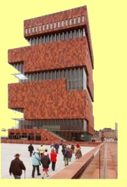 Het befaamde bureau Neutelings Riedijk Architecten haalde het in de architectuurwedstrijd omdat hun ‘stapelhuis’ het beste aansluit bij de historische functie en sfeer van de locatie. En omdat hun ingenieuze ‘verticale stadswandeling’ een ongeziene kijk biedt op alle hoeken en kanten van de stad.’ Het gebouw (zie foto) werd een mooie, solide brok rode steen, het biedt veel uiterlijke transparantie door stevige gevelpartijen van verticaal gegolfd glas en staat daar, van veraf goed zichtbaar tevreden te pronken. Het is letterlijk en figuurlijk een toegankelijk gebouw: het nodigt uit tot een bezoek, een visite + roltrapreis door alle verdiepingen van waaruit een steeds wisselend panorama van Antwerpen te zien is. (Al die omlopen zijn gratis toegankelijk) Van buiten kan het gebouw worden gezien als een geslaagd kunstwerk.