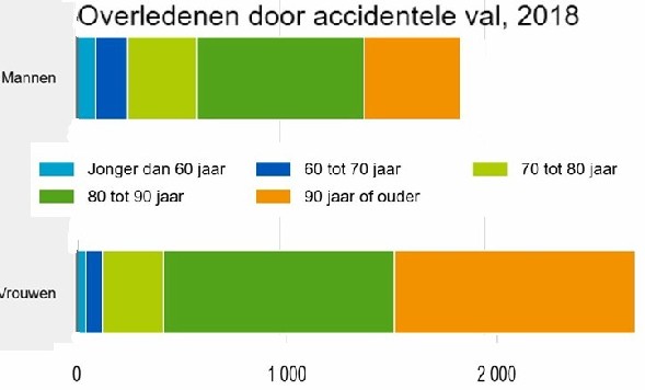 Pas geleden had ik een ervaring die veel mensen ooit overkomt: je bent machteloos om een val te voorkomen en het gaat onverbiddelijk mis. Dat kan soms slecht aflopen, vooral voor ouderen die niet meer zo vast op hun benen staan. Iemand stapt verkeerd op een trap of een krukje om iets te pakken en dondert naar beneden. In totaal gaan tussen vier en vijfduizend mensen per jaar dood door een val, omdat ze op een stoel gaan staan, uit bed vallen, over een drempel struikelen, van de trap of van een ladder, noem maar op. Opmerkelijk genoeg veel meer vrouwen dan mannen, maar dat komt door de leeftijd. Als iemand van haar of zijn fiets valt telt het trouwens mee bij verkeersongevallen en niet bij de ‘accidentele val’. Naast al die overledenen wordt een veelvoud gewond en moet naar het ziekenhuis.