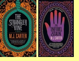 Miranda Carter is de auteur van een paar geleerde geschiedenisboeken*). Vorig jaar heeft ze zich, met ‘The Strangler Vine’ aan een spannend boek gewaagd, een historische thriller natuurlijk. Om een beetje afstand te creëren tot haar eerdere werk noemt ze zich nu M.J. Carter. Zij heeft met Blake & Avery een speurdersduo in het leven geroepen waar we meer van gaan horen. Achterin de pocketuitgave wordt al een voorproefje gegeven van deel 2, dat ‘The Infidel Stain’ gaat heten (inmiddels is het er al).